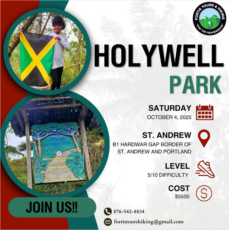 Join Fortis Tours & Hiking on Saturday, October 4, 2025, for an unforgettable hike through Holywell Park in the Blue and John Crow Mountains. Located on the border of St. Andrew and Portland, this trail offers a moderate challenge with a 5/10 difficulty level, making it perfect for both seasoned hikers and those looking for a scenic adventure.